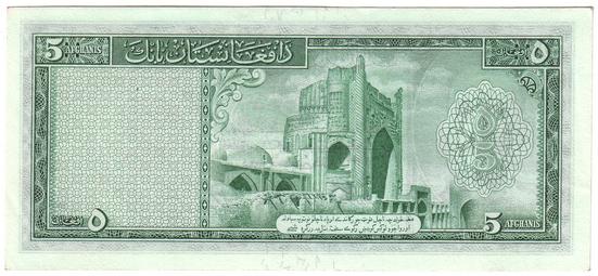 Лицевая сторона банкноты Афганистана номиналом 5 Афгани Обратная сторона банкноты Афганистана номиналом 5 Афгани