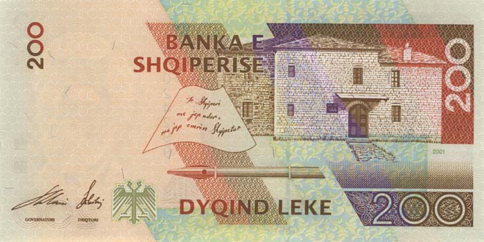 Лицевая сторона банкноты Албании номиналом 200 Лек Обратная сторона банкноты Албании номиналом 200 Лек