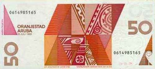 Лицевая сторона банкноты Арубы номиналом 50 Флоринов Обратная сторона банкноты Арубы номиналом 50 Флоринов