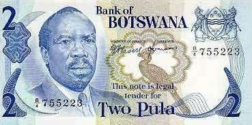 Лицевая сторона банкноты Ботсваны номиналом 2 Пулы Обратная сторона банкноты Ботсваны номиналом 2 Пулы