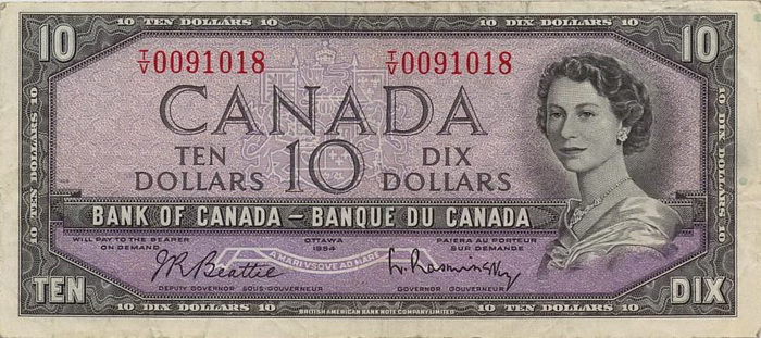Лицевая сторона банкноты Канады номиналом 10 Долларов Обратная сторона банкноты Канады номиналом 10 Долларов