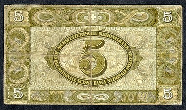 Лицевая сторона банкноты Швейцарии номиналом 5 Франков Обратная сторона банкноты Швейцарии номиналом 5 Франков