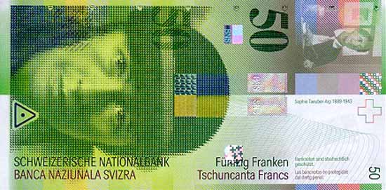 Лицевая сторона банкноты Швейцарии номиналом 50 Франков Обратная сторона банкноты Швейцарии номиналом 50 Франков