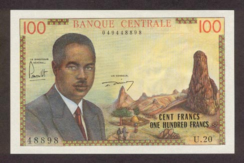 Лицевая сторона банкноты Камеруна номиналом 100 Франков Обратная сторона банкноты Камеруна номиналом 100 Франков