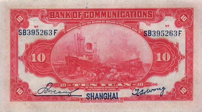 Лицевая сторона банкноты Китая номиналом 10 Юаней Обратная сторона банкноты Китая номиналом 10 Юаней