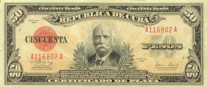Лицевая сторона банкноты Кубы номиналом 50 Песо Обратная сторона банкноты Кубы номиналом 50 Песо