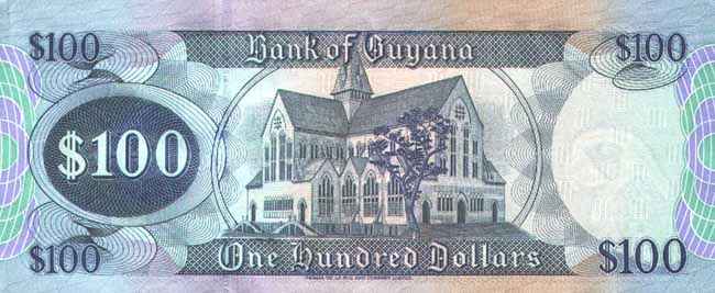 Лицевая сторона банкноты Гайаны номиналом 100 Долларов Обратная сторона банкноты Гайаны номиналом 100 Долларов