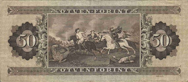 Лицевая сторона банкноты Венгрии номиналом 50 Форинтов Обратная сторона банкноты Венгрии номиналом 50 Форинтов