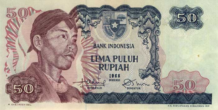 Лицевая сторона банкноты Индонезии номиналом 50 Рупий Обратная сторона банкноты Индонезии номиналом 50 Рупий