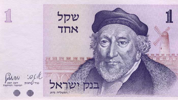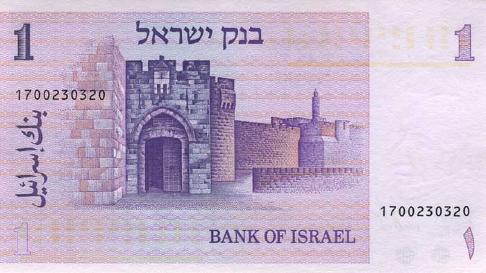 Лицевая сторона банкноты Израиля номиналом 1 Шекель Обратная сторона банкноты Израиля номиналом 1 Шекель
