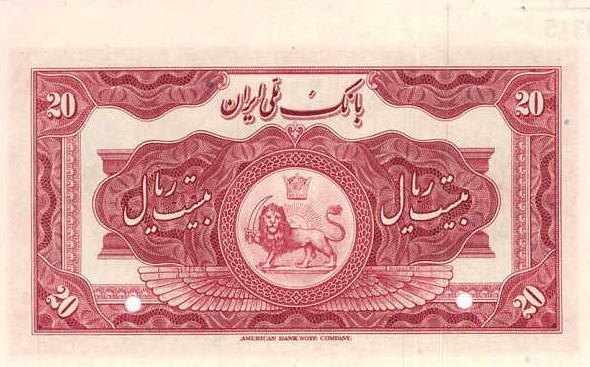 Лицевая сторона банкноты Ирана номиналом 20 Риалов Обратная сторона банкноты Ирана номиналом 20 Риалов