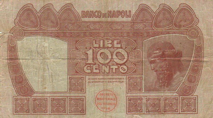 Лицевая сторона банкноты Италии номиналом 100 Лир Обратная сторона банкноты Италии номиналом 100 Лир