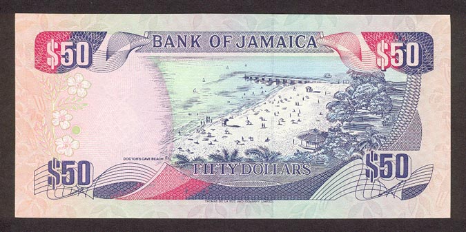 Лицевая сторона банкноты Ямайки номиналом 50 Долларов Обратная сторона банкноты Ямайки номиналом 50 Долларов