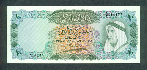 Лицевая сторона банкноты Кувейта номиналом 10 Динаров Обратная сторона банкноты Кувейта номиналом 10 Динаров