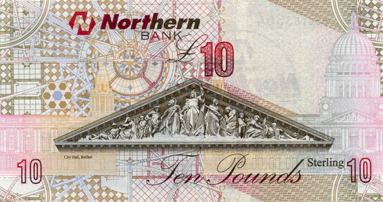 Лицевая сторона банкноты Северной Ирландии номиналом 10 Фунтов Обратная сторона банкноты Северной Ирландии номиналом 10 Фунтов