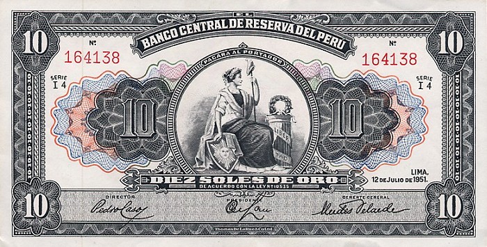 главная / банкноты стран мира / Перу / 10 Солей де Оро (1951)