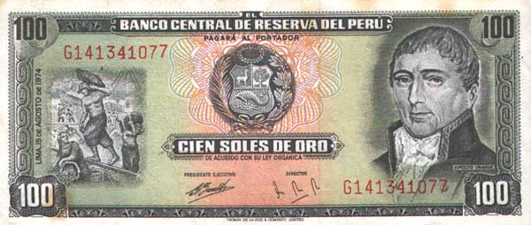 главная / банкноты стран мира / Перу / 100 Солей де Оро (1970)