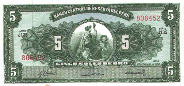 главная / банкноты стран мира / Перу / 5 Солей де Оро (1960)
