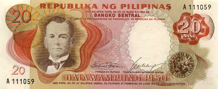 Лицевая сторона банкноты Филиппин номиналом 20 Писо Обратная сторона банкноты Филиппин номиналом 20 Писо