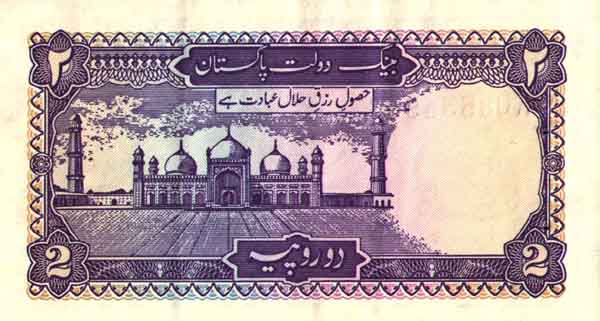 Лицевая сторона банкноты Пакистана номиналом 2 Рупии Обратная сторона банкноты Пакистана номиналом 2 Рупии