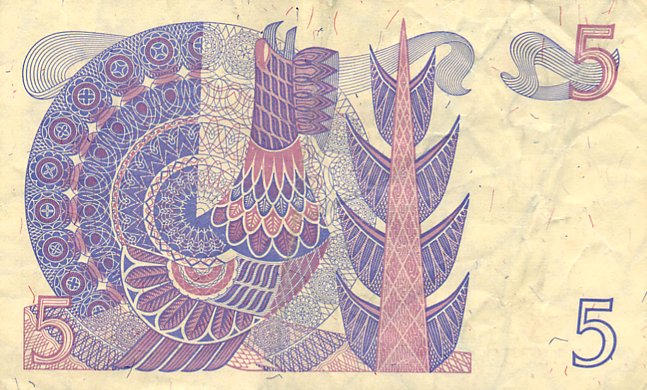 Лицевая сторона банкноты Швеции номиналом 5 Крон Обратная сторона банкноты Швеции номиналом 5 Крон