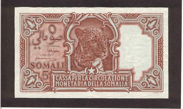 Лицевая сторона банкноты Сомали номиналом 5 Сомали Обратная сторона банкноты Сомали номиналом 5 Сомали