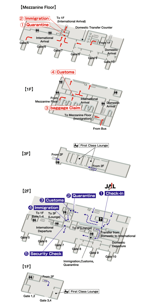 Схема терминалов авиакомпании JAL аэропорта Куаньдяна