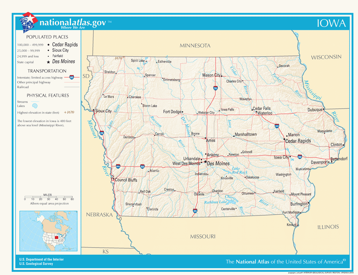 Подробная карта дорог АйовыАйова (Iowa), США (United States)Северная Америка Столица Айовы: Де-Мойн
